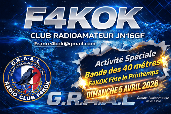 Dimanche 5 Avril 2026 , de 8 heures 30 a Midi ++ , le RC F4KOK en activité sur la bande des 40 mètres . »F4KOK fête le printemps »